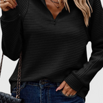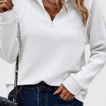 HELENE – Jersey de Cuello en V con Cremallera y Manga Larga
