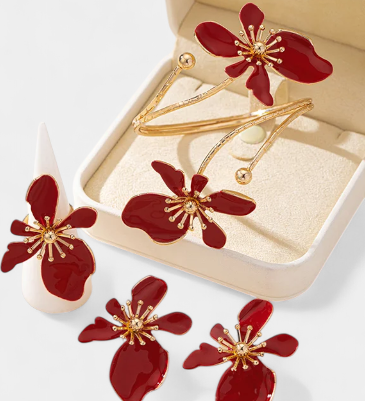 ELIN – Set de Accesorios Florales: Pulsera + Pendientes + Anillos