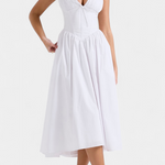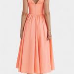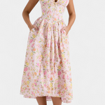 Un vestido que celebra la feminidad con un toque de encanto nostálgico. Margie combina un escote en V pronunciado con una silueta entallada en la cintura y una falda de vuelo midi, creando una presencia atemporal con aire primaveral. Ideal para paseos al sol, celebraciones al aire libre o momentos que piden un estilo natural y radiante.