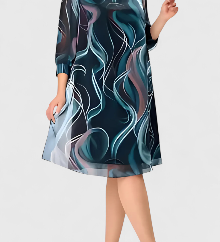 ALMIRA – Vestido de Gasa con Estampado Ocean Whirl y Corte Fluido