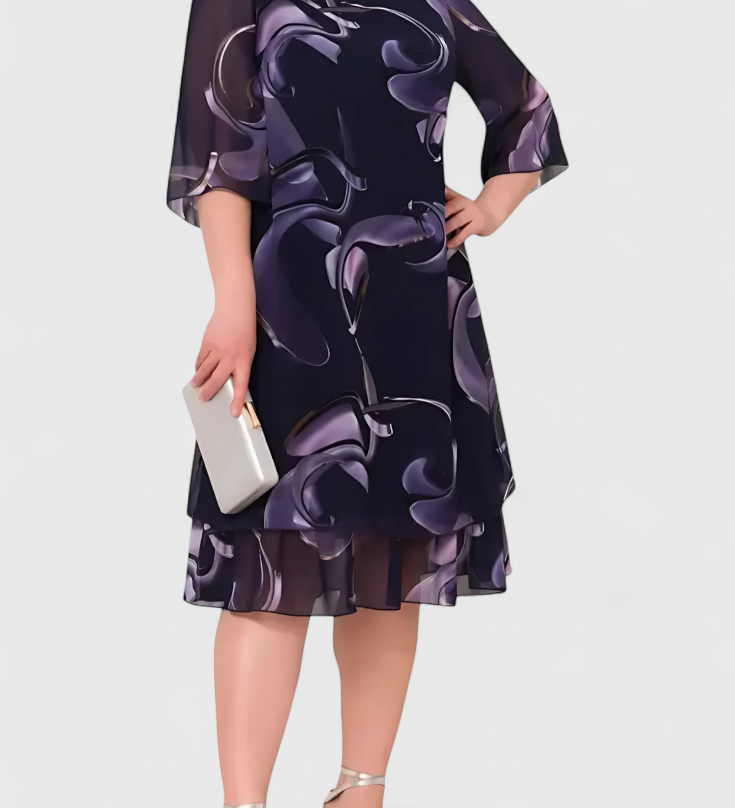 SHRILEY – Vestido de Gasa con Estampado Midnight Swirl y Silueta Fluida