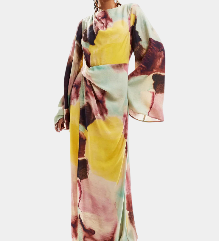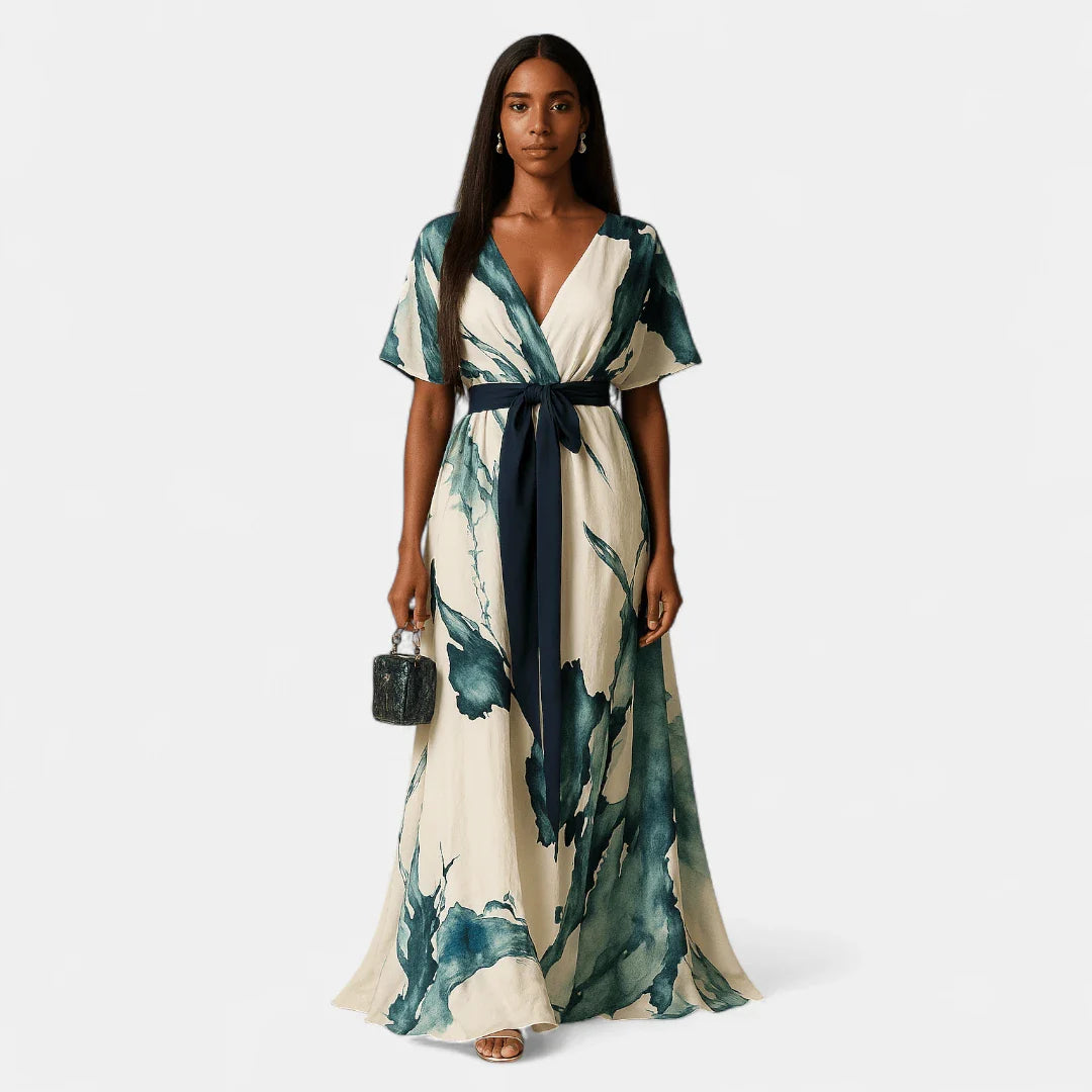 DANA – Vestido Maxi con Estampado de Acuarela y Frontal Torcido
