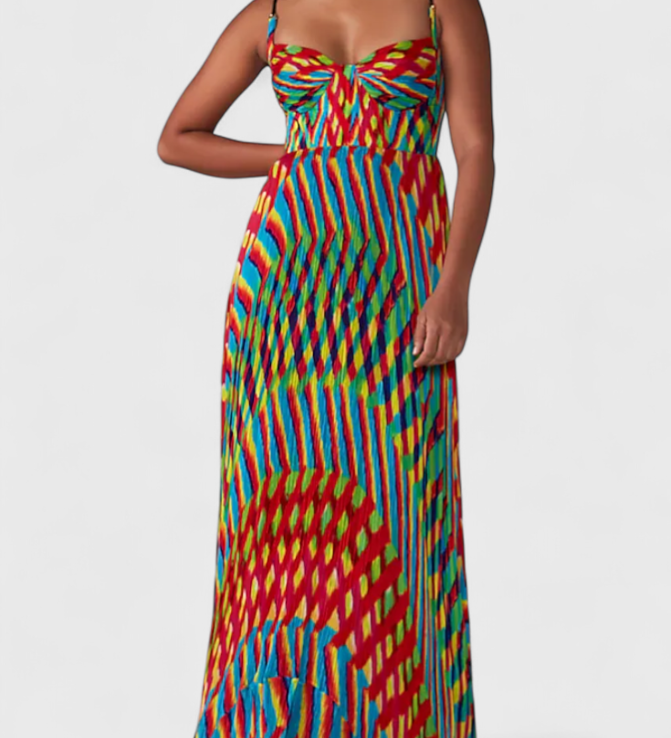 JANIS – Vestido Maxi con Estampado Artístico y Escote Halter Sweetheart