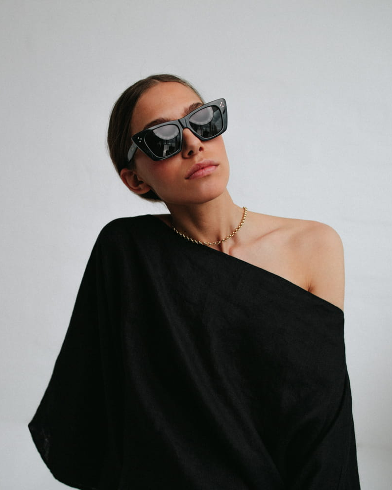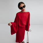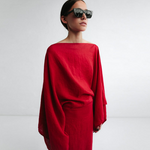 • Diseño distintivo – el escote barco realza el cuello y hombros, mientras las mangas murciélago aportan un aire de movimiento elegante.