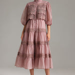 El Vestido Rosa combina encanto y sofisticación en una prenda diseñada para ocasiones especiales. Su silueta midi fluida, las mangas abullonadas y los delicados detalles de encaje crean un look femenino y etéreo que nunca pasa desapercibido. Ideal para bodas, celebraciones o cenas elegantes.